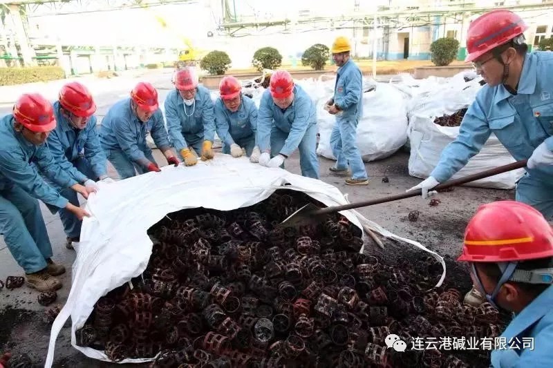 11月7日,重堿車間1#蒸餾塔計劃檢修,在檢查過程中發(fā)現鮑爾環(huán)被堿渣堵塞嚴重,影響正常輪換。11月12日,車間將塔內舊填料扒出,足足有75立方??紤]到這些填料清理干凈后還有利用價值,車間牢固樹立“過緊日子”的思想,打算自行組織職工清理。