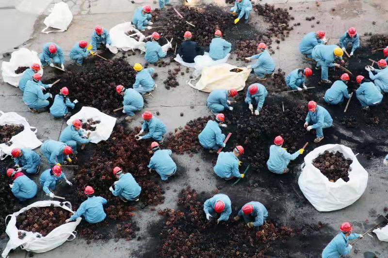 由于清理工作全靠人力完成,崗位人員一邊要維持生產,一邊要清理填料,工作量非常大。11月12日下午,公司黨委書記、董事長張衛(wèi)民在調研重堿車間生產現場時了解到這一情況后,當機立斷,立即組織公司領導及各部門黨員干部義務勞動,協助重堿車間完成鮑爾環(huán)填料清理回收工作。