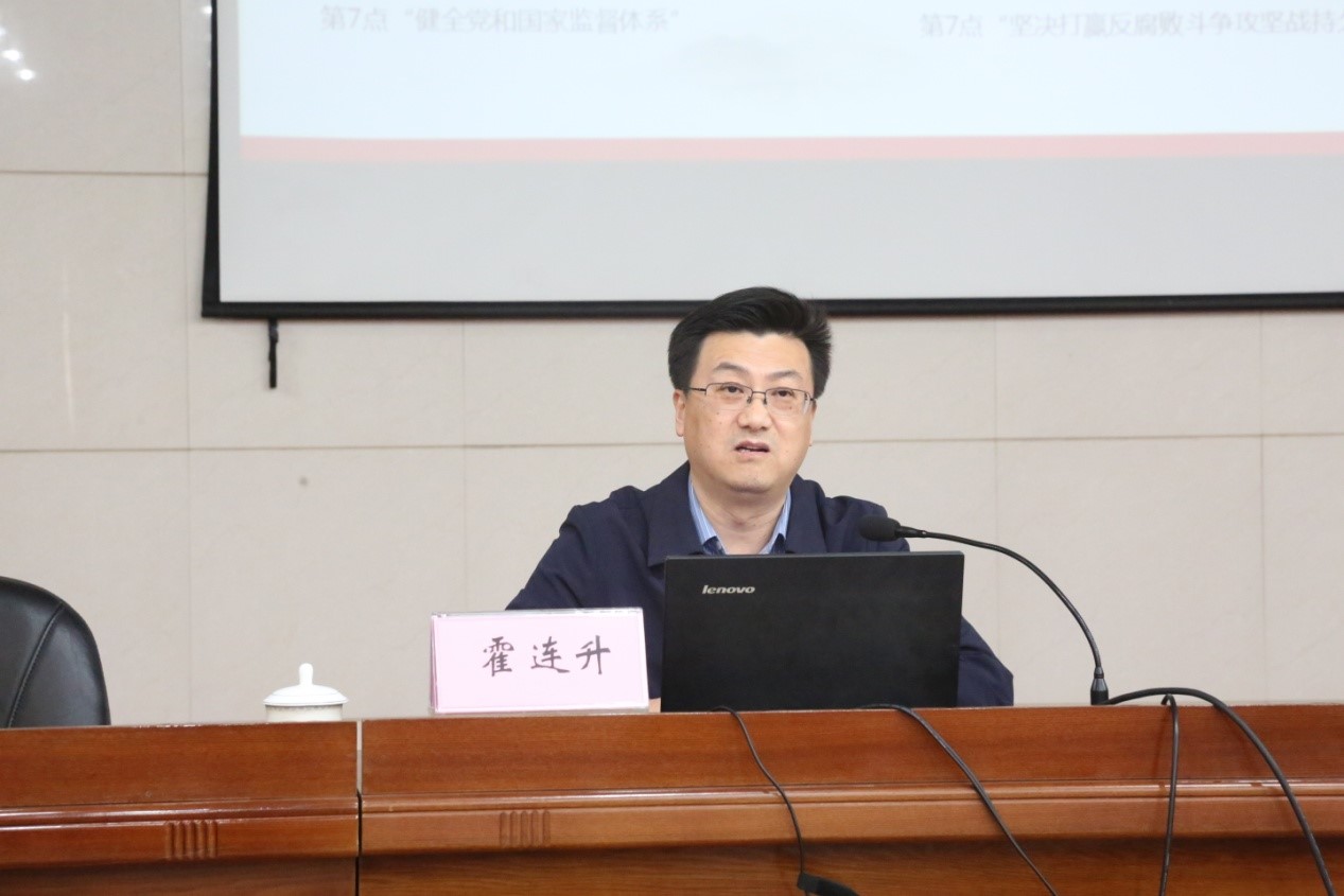 會上,市紀委霍連升主任從“順應大勢,準確把握正風肅紀反腐敗時代特征”、“深入剖析典型案例,汲取深刻教訓”、“切實增強紀法觀念,堅守清廉底線”等三個方面對公司全體黨員干部進行了一次深刻的黨風廉政教育。期間,霍主任引用大量的案例,對全面從嚴治黨理論和黨紀黨規(guī)做出了深刻闡釋。通過算好人生“七本賬”,逐項進行對比分析,明辨利弊得失,與會黨員干部清楚地明白了該選擇什么、放棄什么,進一步堅定政治立場,堅守廉潔底線,選對自己的人生路。
