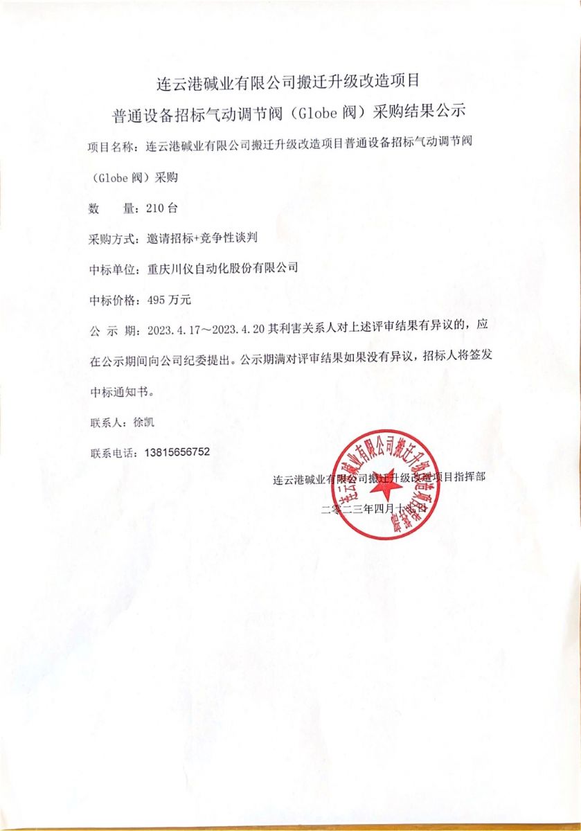 氣動(dòng)調(diào)節(jié)閥(Globe閥)采購結(jié)果公示